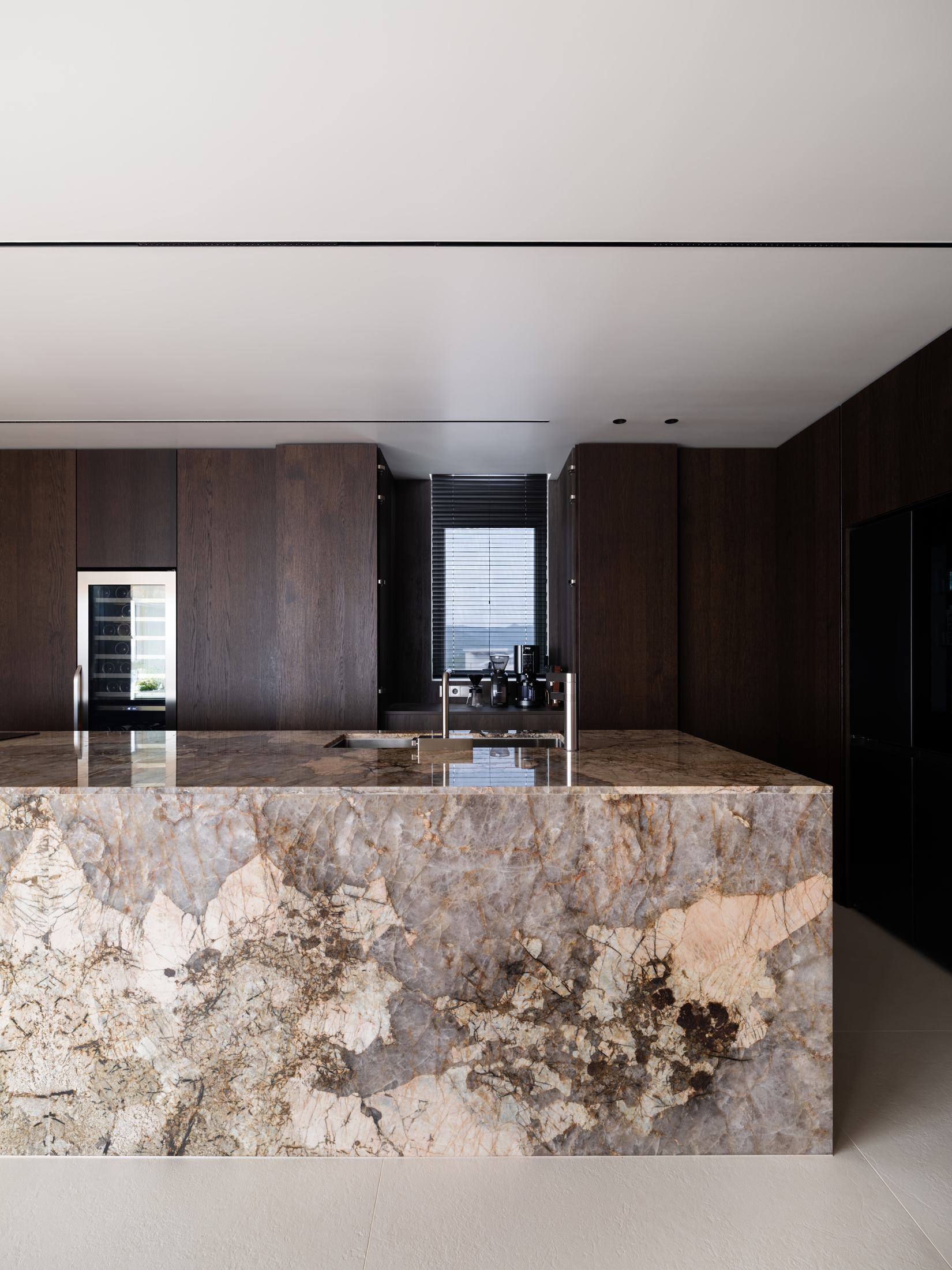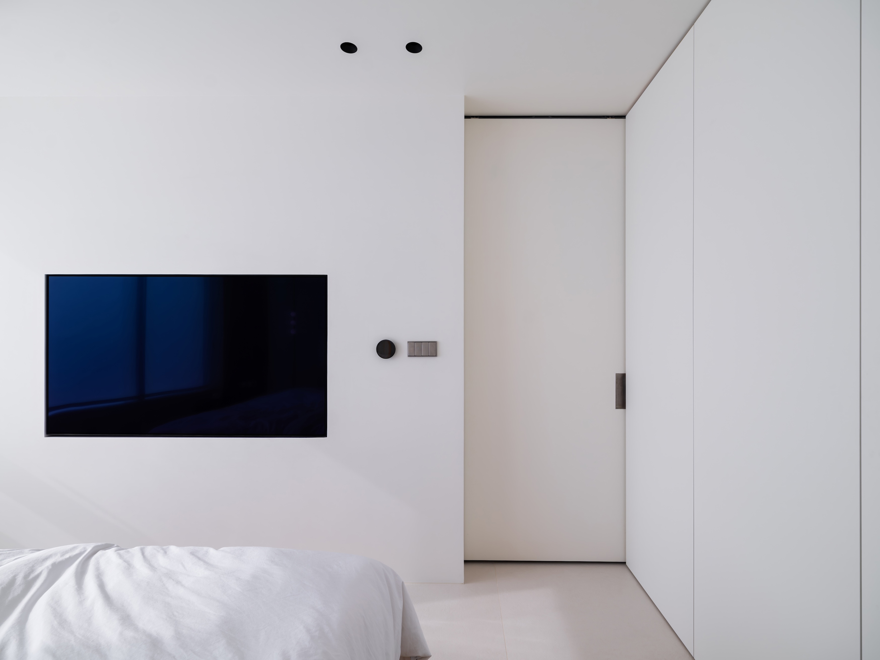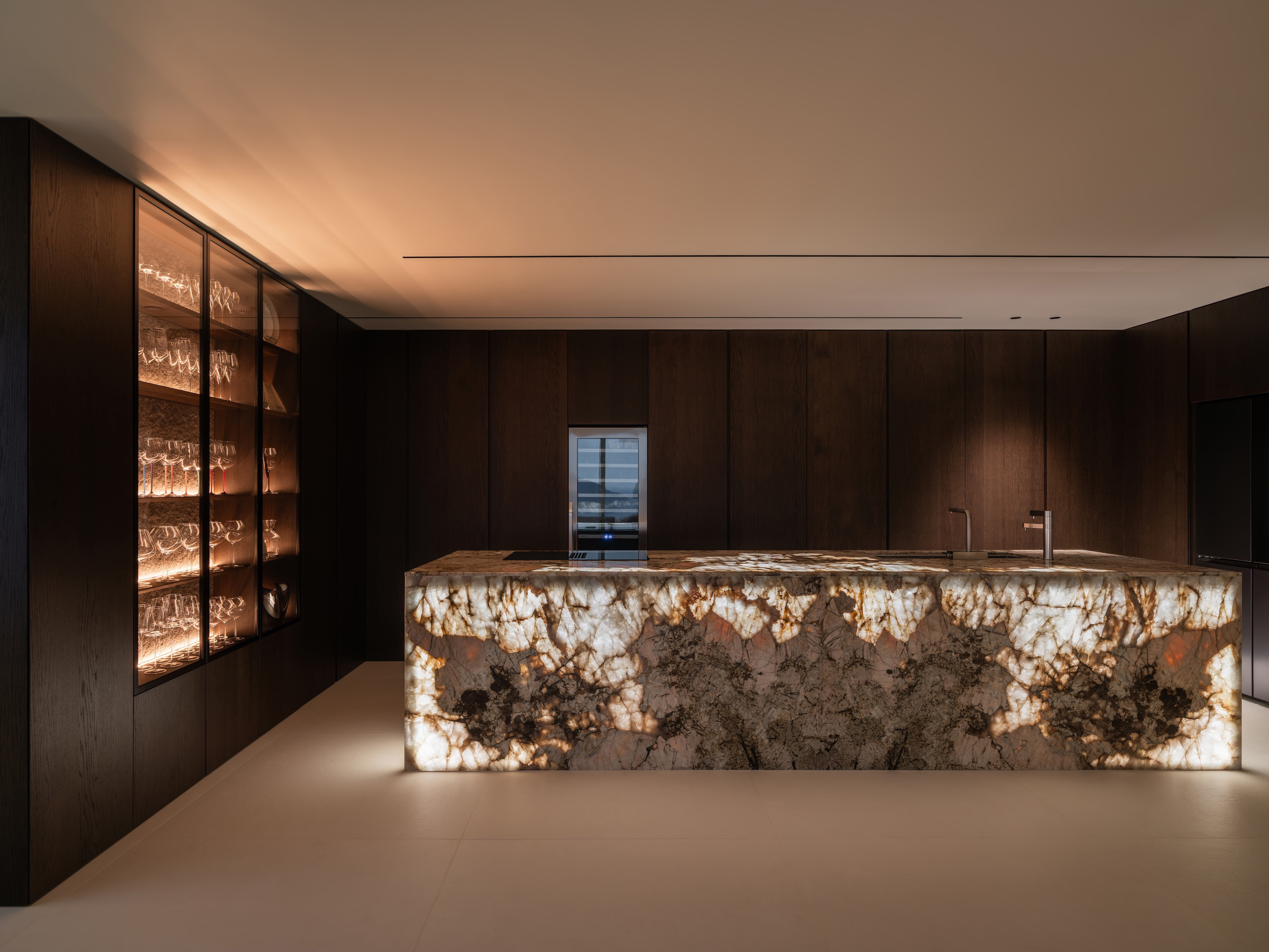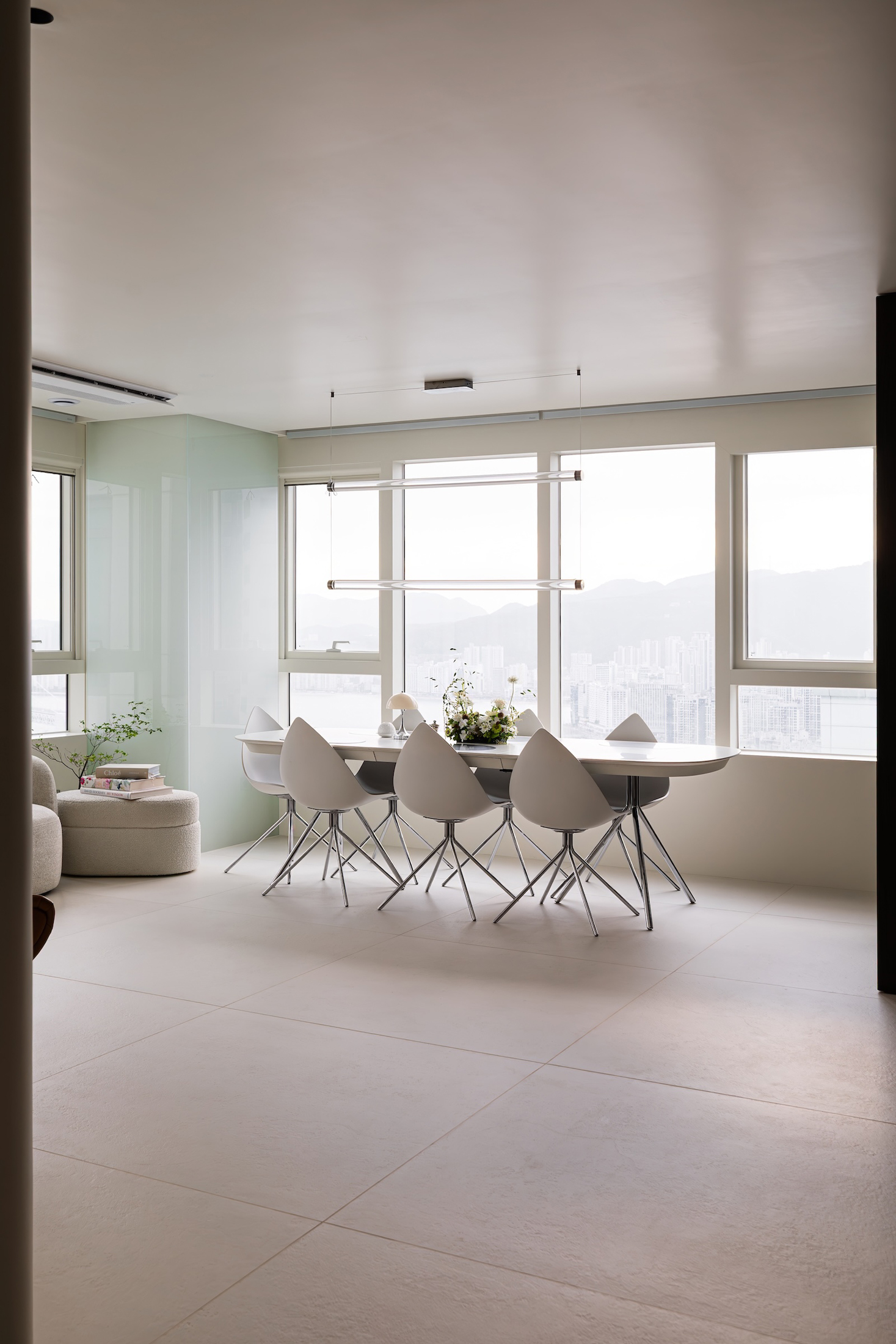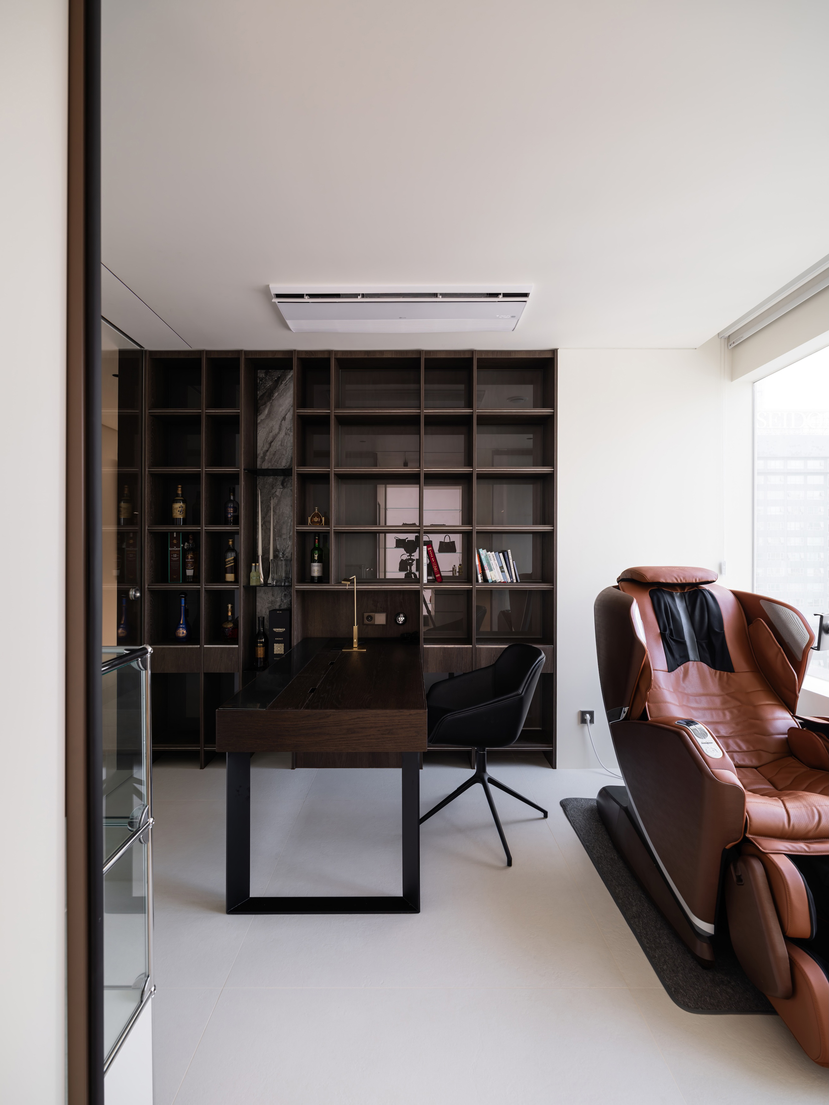 해운대 마린시티의 정점에 위치한 아델리스는 오피스텔 타입 주거 형태로 기존 평면을 개선해 필요한 공간을 극대화하는 레이아웃 작업에 매우 많은 노력을 기울인 공간이다. 불필요한 공간은 과감히 철거해서 필수적인 공간으로 편입시켜 공간을 확대했으며, 고객의 취향과 공간의 특성에 맞는 고급 마감재들로 미감이 충족되도록 설계하였다. 바다와 가장 가까운 곳에 위치한 아델리스의 아침은 윤슬에 반사된 자연광이 집안 내부를 충분히 밝히고 있다. 공간이 자연광을 충분히 머금을 수 있도록 고급도장마감으로 공간 전체를 계획했다. 사실 이번 공간의 특별함은 해가 진 이후부터 드러난다. 클라이언트와 충분히 고민해서 만들어낸 조명 위치와 개수, 그리고 조명하는 방식은 공간을 더욱 완결성 있게 만드는 핵심이었다.
