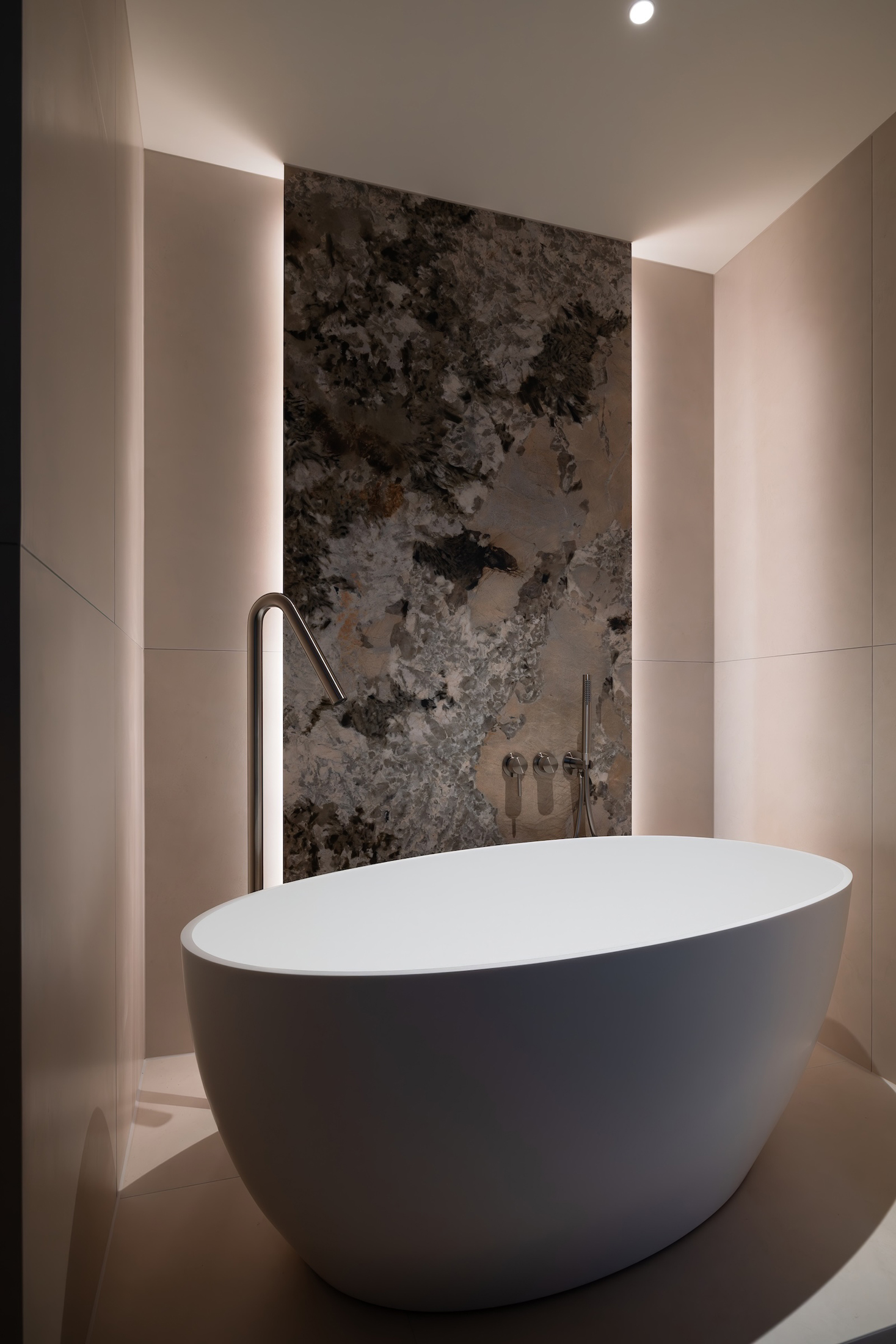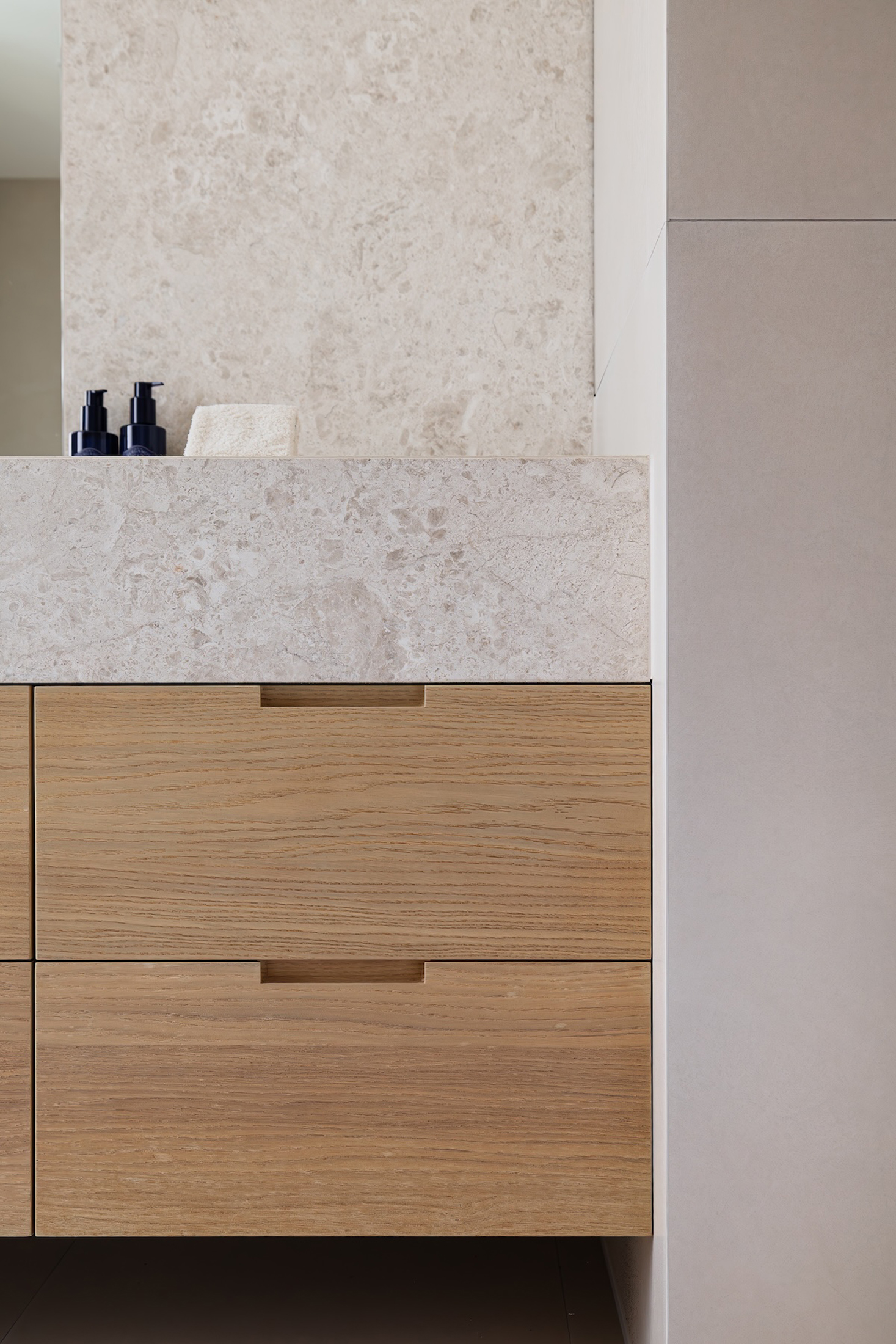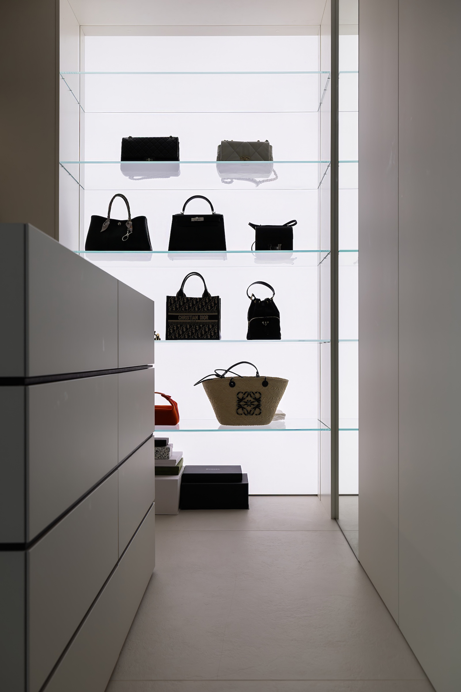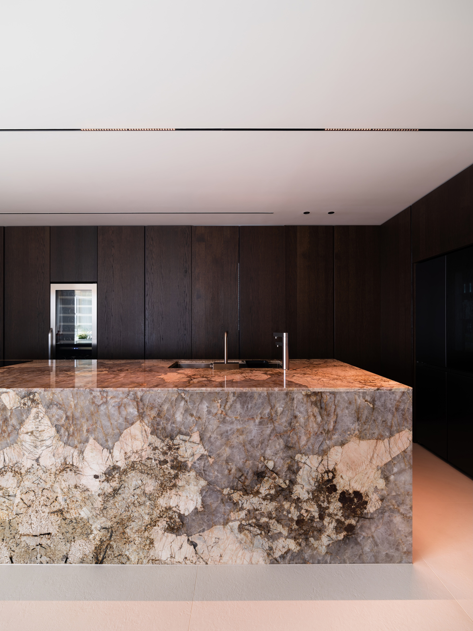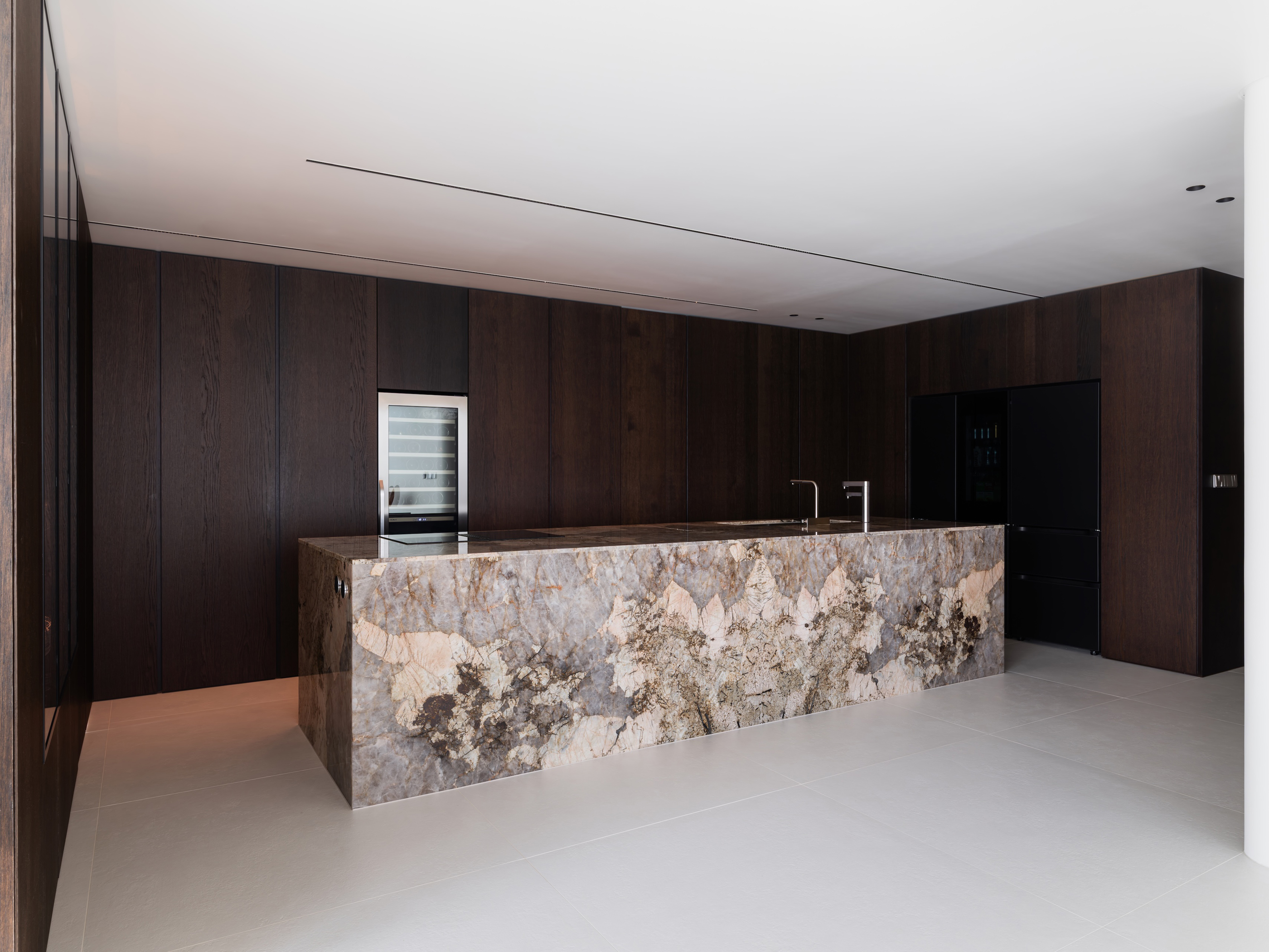 해운대 마린시티의 정점에 위치한 아델리스는 오피스텔 타입 주거 형태로 기존 평면을 개선해 필요한 공간을 극대화하는 레이아웃 작업에 매우 많은 노력을 기울인 공간이다. 불필요한 공간은 과감히 철거해서 필수적인 공간으로 편입시켜 공간을 확대했으며, 고객의 취향과 공간의 특성에 맞는 고급 마감재들로 미감이 충족되도록 설계하였다. 바다와 가장 가까운 곳에 위치한 아델리스의 아침은 윤슬에 반사된 자연광이 집안 내부를 충분히 밝히고 있다. 공간이 자연광을 충분히 머금을 수 있도록 고급도장마감으로 공간 전체를 계획했다. 사실 이번 공간의 특별함은 해가 진 이후부터 드러난다. 클라이언트와 충분히 고민해서 만들어낸 조명 위치와 개수, 그리고 조명하는 방식은 공간을 더욱 완결성 있게 만드는 핵심이었다.